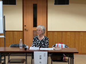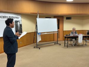 8月例会後には皆で学ぼう~久米正雄先生・宮本百合子先生~を開催しました。講師にはタウン誌「街こおりやま」元編集長であります伊藤 和 様にお務めいただきました。佐久間理事長の挨拶では伊藤様の貴重なお話を理解し、本日参加が叶わなかったメンバーに勉強会の内容を説明して欲しいと話しました。伊藤様から久米正雄先生・宮本百合子先生と郡山市とのつながり、郡山青年会議所と『久米賞・百合子賞』の歴史についてご講演いただきました。参加したメンバーは伊藤様が手書きで作成した資料にペンを走らせ、伊藤様のお話に深く頷いていました。創立以来継続している「久米賞・百合子賞」を今後さらに発展していくためにメンバー1人ひとりが両氏の功績などを学習し、当事者意識を持って事業に取り組んでまいります。