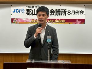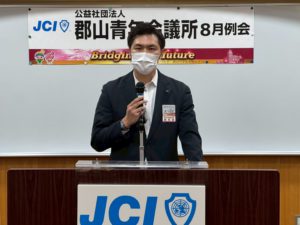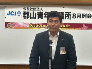 佐久間理事長挨拶では8月事業の御礼とこれから開催される県内各地青年会議所の周年式典に参加した際には良いヒントを得て、来年開催予定の郡山青年会議所65周年式典につなげて欲しいと話がありました。その後、会務報告と出向者報告があり閉会となりました。