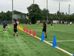 サッカー教室では遊佐克美様の他、学校法人尚志学園尚志高等学校サッカー部の皆様にご協力いただき、各班に分かれドリブルやパスの練習を行いました。参加した子どもたちからは1プレーに一喜一憂している姿が印象的でした。また、見学に来られた保護者の皆様も子どもたちが楽しそうに活動する姿を温かい目で見守っている様子が伺えました。