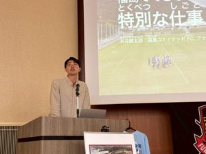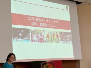 当日は(株)AC福島ユナイテッド様に所属するアナリスト・トレーナー・農業部の方による講話と、元Jリーガーである遊佐克美様によるサッカー教室の2部構成で実施しました。