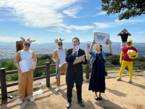 昼食後は若草山山頂まで登りました。山頂までの道中にて(一社)奈良青年会議所総務アカデミー委員会新入会員の皆様による渾身のエクスカーションもあり、お互いの親睦を深めました。